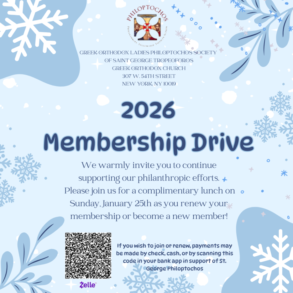 Philoptochos member, Margarita Neocelous Skoufris, is hosting a luncheon on Sunday, January 25. During the luncheon, the Philoptochos will be hosting a membership drive. We hope you will continue to support our philanthropic efforts!